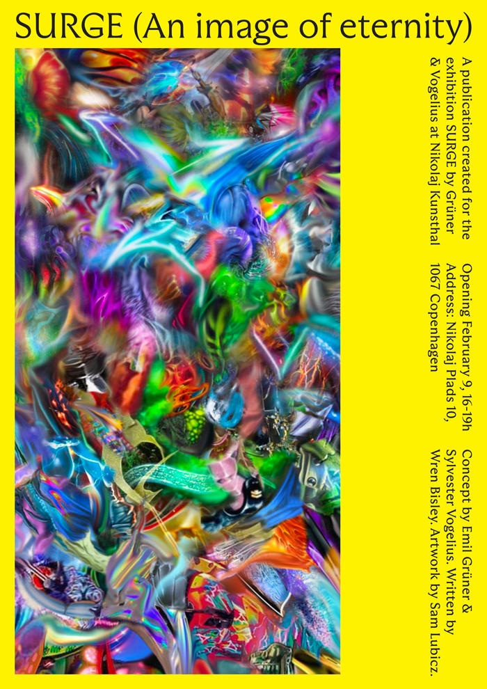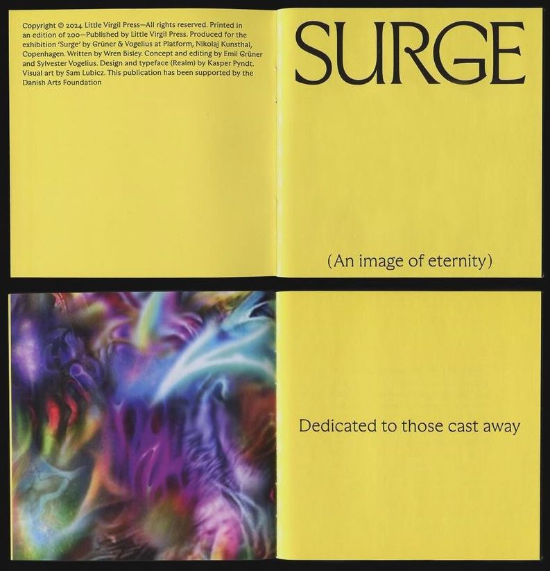Little Virgil Press, (DK), 2024Poster image and accompanying book imagery for Grüner & Vogelius exhibition at Nikolaj Kunsthall, Copenhagen.